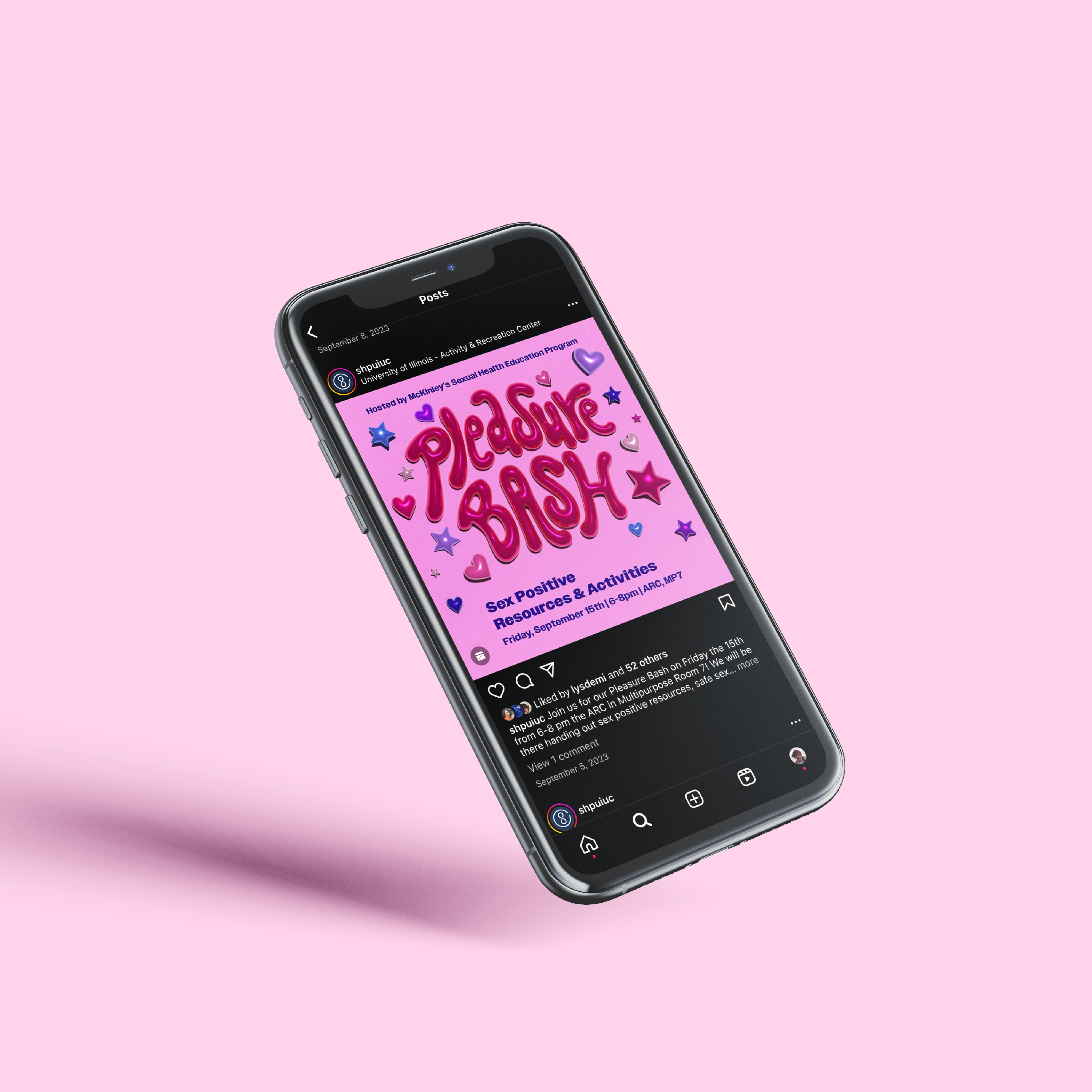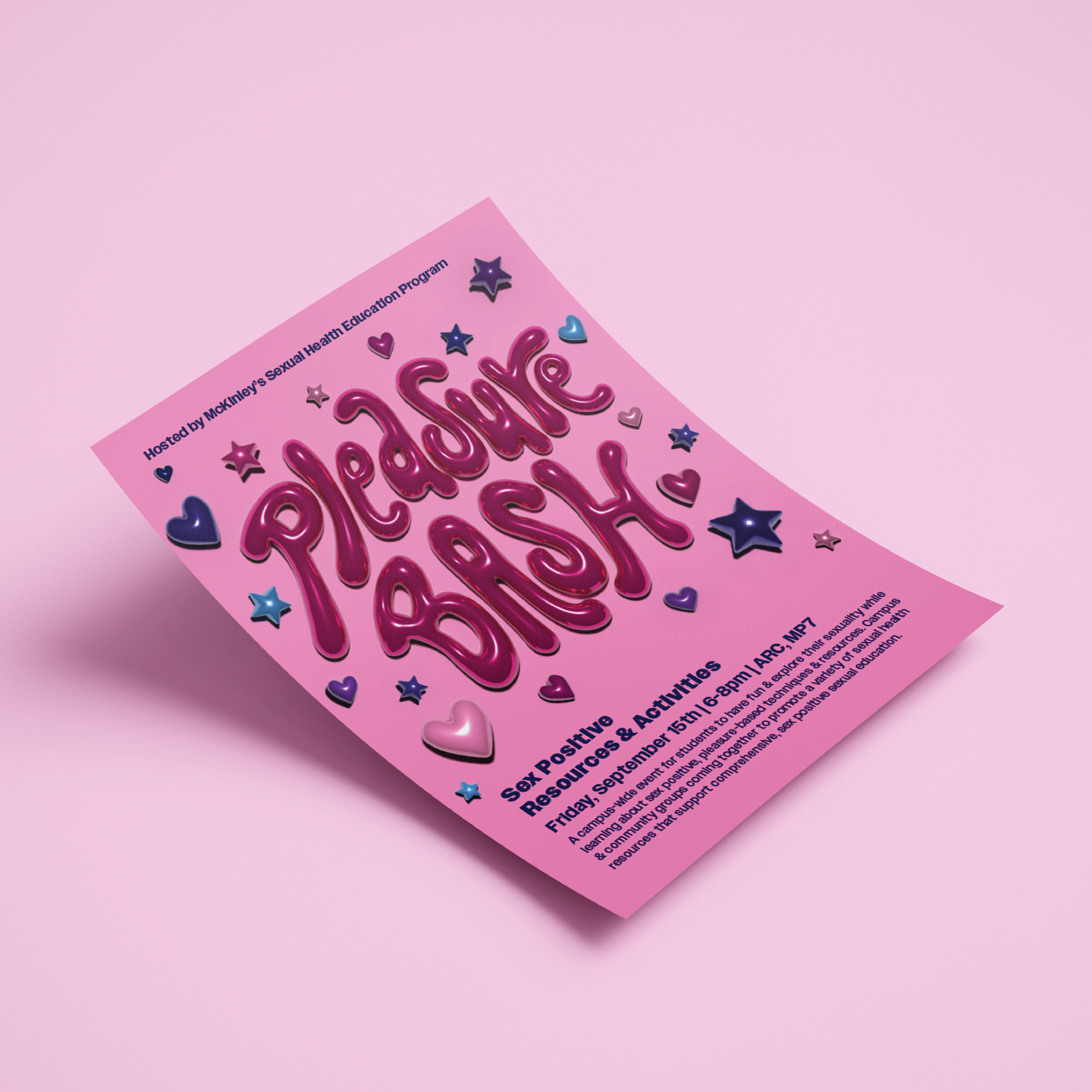 One of my favorite projects was creating materials for the Pleasure Bash event. This was my first time using the 3D effect in Illustrator and it was fun to experiment with. It made the materials eye-catching and successful in promoting the event.